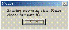 Click "Open" to choose present firmware file, and a firmware-recovering window will appear. Like following box