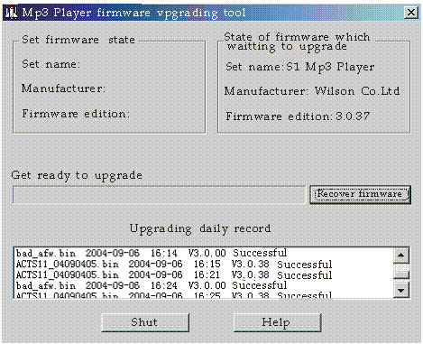 When the inner of MP3 player firmware is damaged, you can recover it with firmware recovering tool by operate MP3 player Utilities. Please follow the ways: