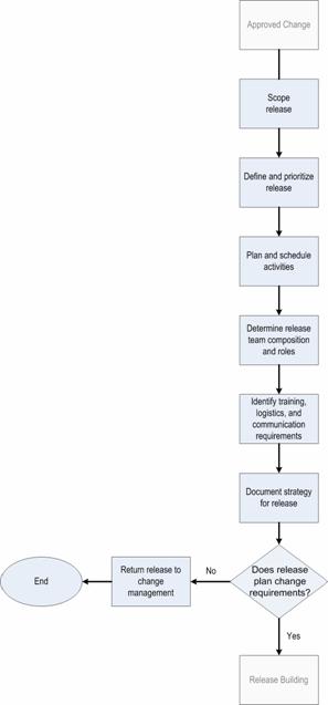 The first step in the release process is the creation of a plan identifying the activities and the resources required to successfully deploy a release into the production environment. The process flow leading to the creation of this plan is shown in Figure 2.