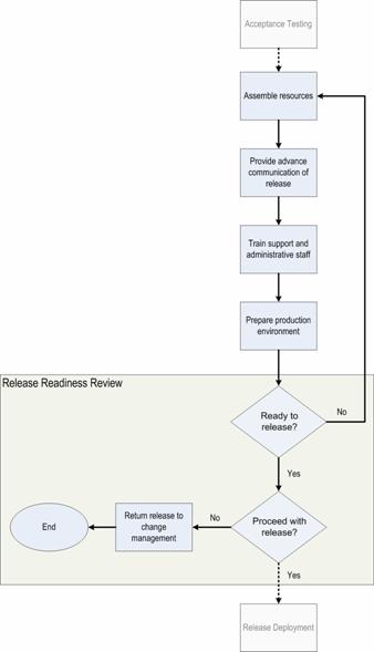 Determining the readiness of each release based on release criteria (quality of release, release package and production environment readiness, training and support plans, rollout and backout plans, and risk management plan).