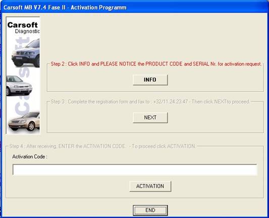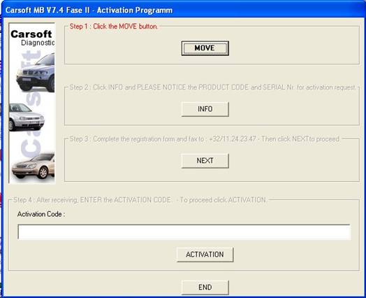 Start MB.exe in C:\Program Files\CARSOFT\MB; now you see the Activation Window.