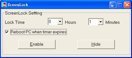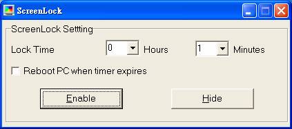ScreenLock is quite easily used as what is seen. ¡¨Enable¡¨ means starting setting and ¡§Hide¡¨ means hiding the program on the system tray.