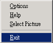 After users single-click the right mouse button on ScreenLock on the system tray, a menu, where users can choose Options (setting program) ¡B¡§Help (call the description file) or Exit (terminate the application program), will appear. Users also can double-click the left mouse button on the selected small icon of ScreenLock and then the main operation interface will appear.