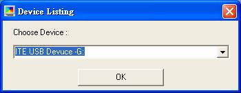 When user run the ScreenLock (Without ITE USB Mass Storage Device into USB port), The program will take the first ITE USB Mass Storage Device inserted into USB port as a key. But if there are two same ITE USB Mass Storage Device inserted into USB port (ScreenLock isn¡¦t running), a windows, ScreenLock where users can choose one ITE USB Mass Storage Device as a key will appear.