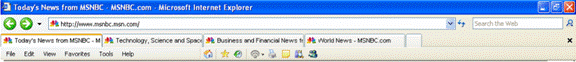 Managing tabs in beta 1 also includes the ability to configure Internet Explorer 7 to open a new tab upon clicking a new link in a Web site. For example, the user can visit a favorite news site and click on any link to a section of the site in the page - for instance, to open one tab for the main news section, another for the business section and another for the technology section, all in one view. Another scenario is comparative shopping online where the user can compare multiple online shopping sites in a single view.