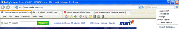 In the 10 years since Internet Explorer was first released, the Internet and Web browsers have gone from curious novelty to critical tool for personal and professional productivity. Browsing the Web is one of the top activities people do on a PC. As the Web has become more complex and yet more mission-critical, personal and professional PC users are no longer satisfied with merely being able to navigate to one page at a time; they want easier ways to search from multiple places for information they care about. The ability to easily search and consume multiple sources of information daily has become a necessity - whether for looking at favorite news sites, consulting intranet sites, managing finances, researching, shopping, e-mailing or even blogging.