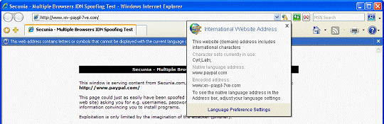 Hackers commonly attempt to mislead users into thinking they are looking at information from a known and trusted source. A valuable hacking tool has been the ability to hide true URL information and domain names from users. Internet Explorer 7 contains two powerful visual tools to help prevent users from being duped: an Address Bar in every window and Internationalized Domain Name (IDN) support.