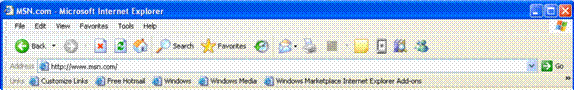 "Frame" is a term that refers to the way the browser's user interface is laid out. In Internet Explorer 6, the default frame includes menus at the top and a row with buttons for Back, Forward, Stop, Home, Go and so on; below that is the Address Bar.