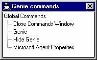 When a speech engine is installed and enabled, Microsoft Agent also includes a special interface called the Commands Window. This window displays the voice-enabled commands defined by the client applications for a character.