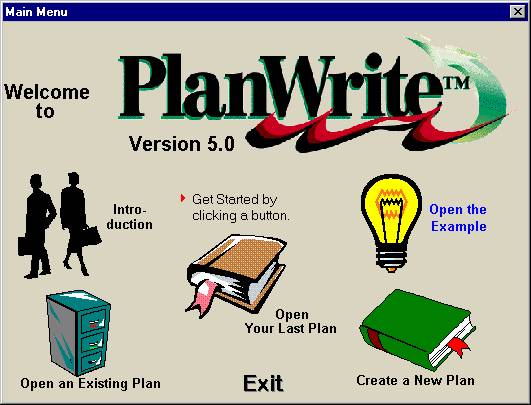 To begin, start Plan Write by double clicking its icon on your main screen. This will initiate Plan Write and display its welcome screen as shown below.