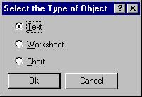 You may associate a text window, a chart or a worksheet window with the new topic. To do this double click on the new topic label and the following dialog box will be displayed.