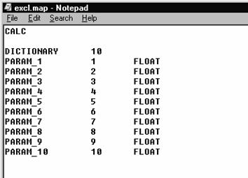 Where [parameterName] is any string you wish and [Number] is the parameter number you wish to use. Make sure that the "DICTIONARY" specification at the beginning of the MAP file is equal to the largest parameter number.