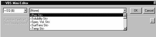 A variable selection box allows your dialog to select a stream or unitop property. This is used in unitops like controllers.