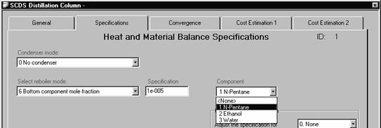 Frequently, users must select one of the components from the component list. This is usually done with a combobox control. The dialog box returns the ordinal position of the component selected (NOT THE COMPONENT ID NUMBER). For example, the user's flowsheet has the following component list