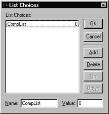 Create the combobox in the normal fashion using the controls palette. After creating you combobox, double-click it to view it's properties sheet. Set the "ValueID to correspond to the MAP file entry, and set the "ListItems" to "CompList" value 0.