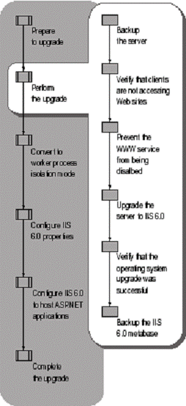 Figure 5.1 illustrates the process for upgrading an existing IIS server hosting Web sites and applications to IIS 6.0.
