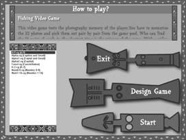 Requires a camera and a mouse to play. Object of the game is to find matching photo cards. Use the camera to make your own photo cards, then send your game to a friend.