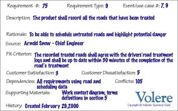 this document uses copyright material from the Volere Requirements