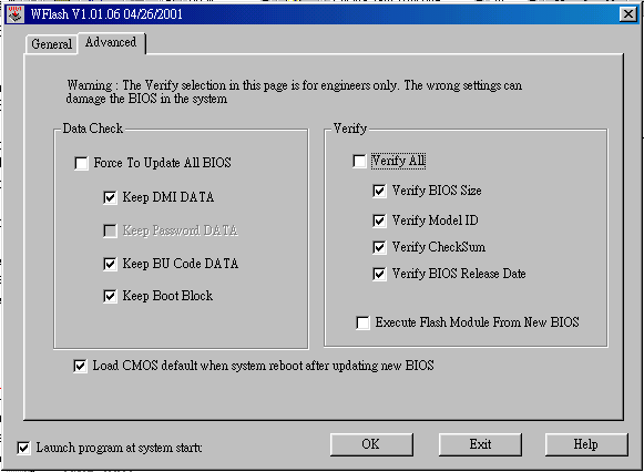 6. 434t191e 434t191e 434t191e The "Data Check" area will let you to select which data (DMI, BU Code, Boot block, Password) you want to keep in flash ROM while updating new BIOS.