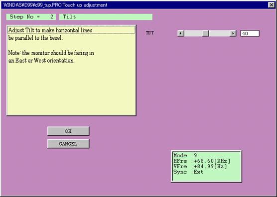 Push OK button to go next adjustment step otherwise push CANSEL button to exit adjustment mode.