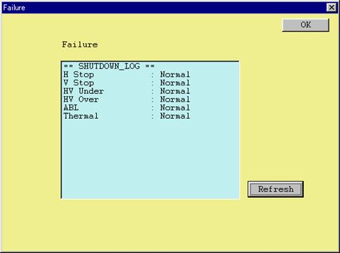 This screen displays failure information. The failure status is cleared when this screen exits.