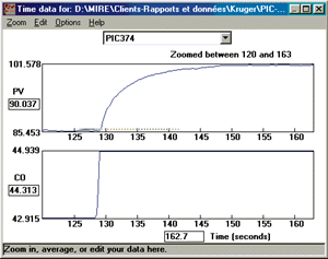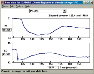 The tuning parameters are chosen, in this case, to ensure robustness. This loop must eliminate disturbances quickly, but the valve has not been tested throughout its range, so a safety factor of 2.6 is used. Also, the valve operates only over a small part of its range and the behavior of this loop is greatly dependent on the valve.