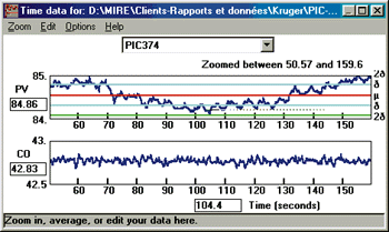 Statistical analysis before and after (Figure 6) shows variability is cut by half. The short oscillations remain but the long oscillations are removed. This was easily visible on the DCS trends.