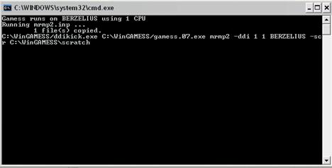 Step 5: The DOS batch script is now saved. You will find it in the WinGAMESS root folder with the name jobs.bat. Just double click on this file and GAMESS will start running.
