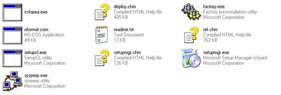 You should now see the contents of the CD. Now open the "Support" folder and then the "Tools" folder. The file we are looking for is a compressed file called "DEPLOY.CAB". Before you go any further make a new folder on your desktop and extract the contents of this CAB file to that folder. You can name this folder whatever you like. Now open the folder that you just created. You should see a few different files here. The one we want is "setupmgr.exe". For now just disregard all the other files except for the Windows XP Preinstallation Reference.(ref.chm) This is a help file that goes more into creating an answer file and explains more about the other files that are included in the folder that we just made. If you run into problems it might come in handy.