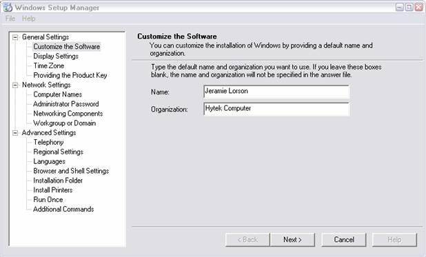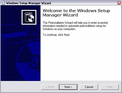 Welcome to the Windows Setup Manager - This Wizard is going to take us through the options of creating the answer file. Just click next here.