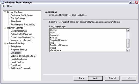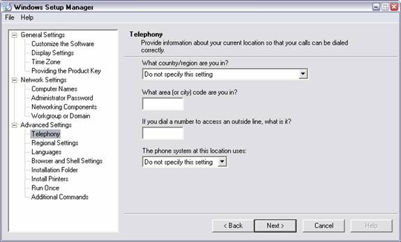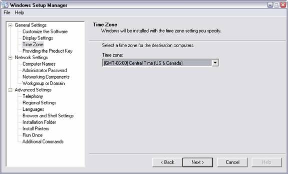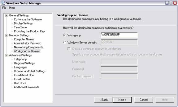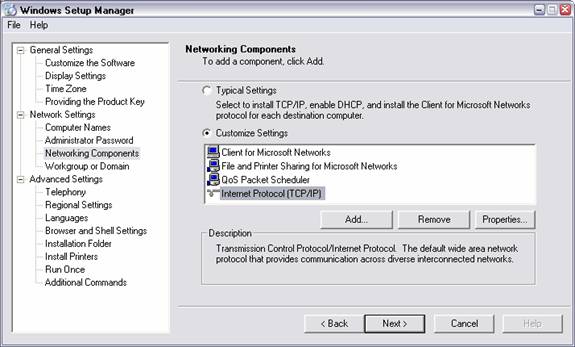 Networking Components - By default the Setup Manager includes the Microsoft Networks Client, File and Printer Sharing, and TCP/IP. If you rather set this up later, leave it at the typical settings.
