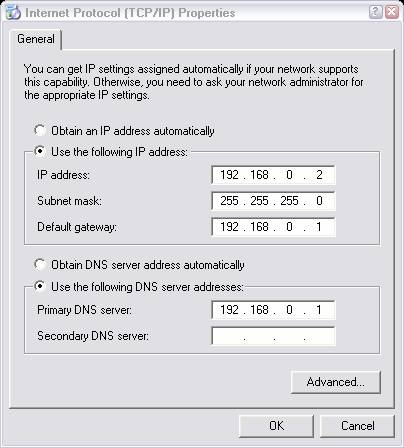 TCP/IP Settings - This is not necessary but like I said before, I like my network to be ready to go when the computer boots for the first time. Since I am on Dial-up and have to use ICS (Internet Connection Sharing), this is an example of the TCP/IP settings I could use on a computer that has to connect to the internet through another computer.