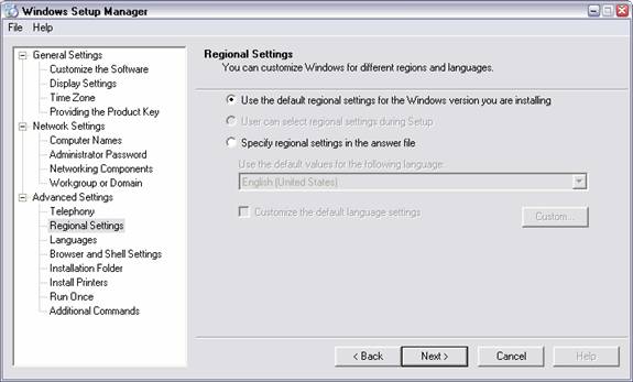 Regional Settings - By default this is set to English (United States). Well at least my version of XP is this way. Again, I don't think this is too painful of a decision. So make a choice and let's move on.