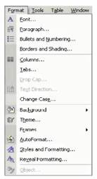Menu Bar When you open a menu in Word from the Menu bar, it will display initially the commands you have recently used. To view all options in any selected menu, you must click the double arrow at the bottom of the menu list. The images on the right show an example of a collapsed menu (Figure 1) and an example for the same menu expanded (Figure 2). |