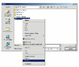 Rename Documents To rename a Word document, select File > Open and find the file you want to rename. Right-click on the document name with the mouse and select Rename from the Shortcut menu. Type the new name for the file and press the ENTER key on the keyboard. |