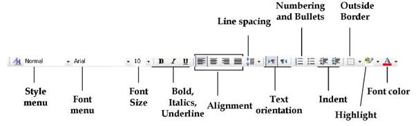 Formatting toolbar: Contains a shortcut list of formatting options available inside the Format menu.