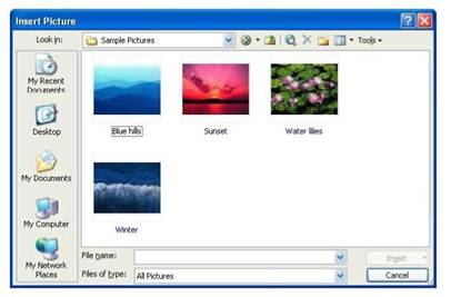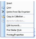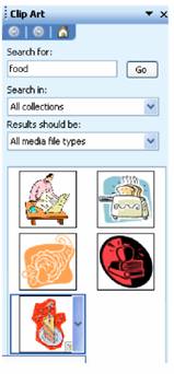 Clip Art: Allows you to search the Clip Art Gallery using keywords.