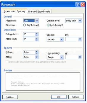 Under General you can see the Alignment, Directions, and Outline level of your paragraph.