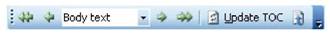 When done, either go to the start of the document (where you have previously inserted a TOC) and select Insert > References > Indexes and Tables and click OK, or directly from the Outlining toolbar, click on Update TOC button.