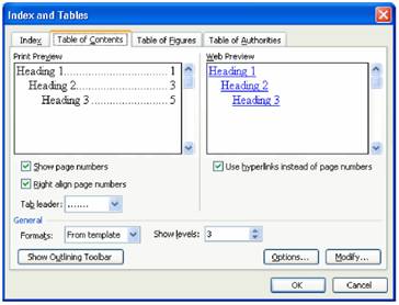 Note: Number of levels is different from the number of headings in your text. Introduction, body, and conclusion are on the same level (example: Level 1). Under each, you might have more headings of higher levels. You should specify a maximum level otherwise all headings of level greater or equal to the specified would not be included in your TOC. |