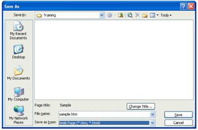 To change the title of the Word document, click on Change Title button. This title will appear at the top of the web browser when a person views your Web page. Click OK when done.
