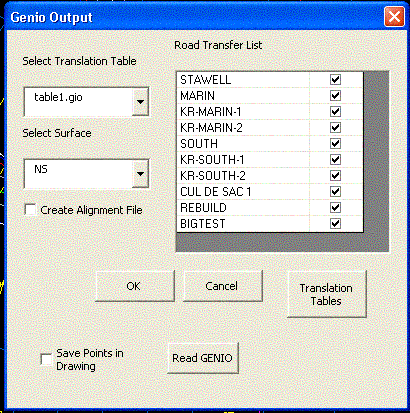 (The Read GENIO button is used to read in a GENIO file. This is mainly used for loading a file containing survey strings. If required, the points in this file can be saved as COGO points. See additional documentation for a description of how this works.)