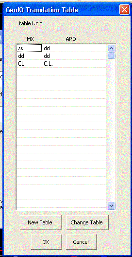 Select New Table to create a new table. The software will automatically write in all the codes used in ARD and the first 2 characters as the MX string.