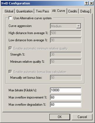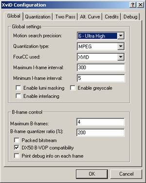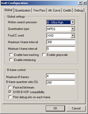 Here, select "XviD MPEG-4 Codec" and click the "Configure" button, which brings the "XviD Configuration" window.