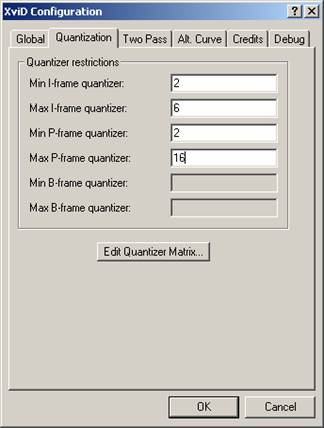 (I-frame quantizer and P-frame quantizer). You can go up to I-frame quantizer:
