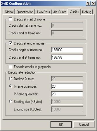 and go to "Credits" tab. Here you can type in the credits range (start and end