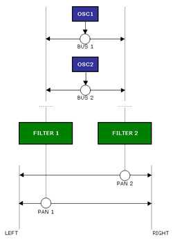 Additionally, most synthesizer parameters can be modulated with the built-in envelope follower, connected to audio inputs by using the modulation matrix. See the "Matrix Controls" table for more information.