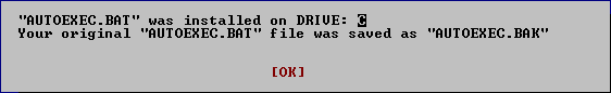 The following contents are written into the new AUTOEXEC.BAT. After restarting PC, these are valid.