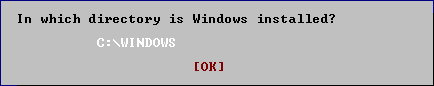 8. Click OK if Windows is installed in the directory C:\Windows, which is the default directory for Windows. Or specify a different directory.