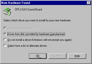 Do not open the dialog box, but display and set the contents into OPL3SA.INI.